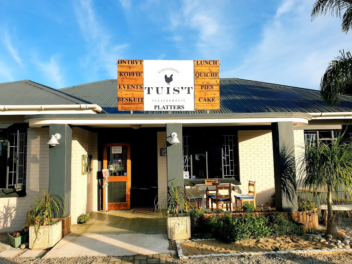 Tuis't Plaaskombuis is a cozy coffee shop nestled in the heart of Humansdorp, located at 28 Piet Uys St, 6300, South Africa. It’s the perfect spot to enjoy a relaxed atmosphere while savoring some delicious comfort food and delightful desserts. Whether you're a local or just passing through, this charming diner offers an inviting space for breakfast, a hearty meal, or a sweet treat.